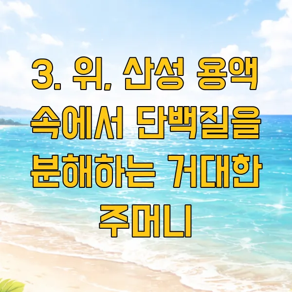 3. 위, 산성 용액 속에서 단백질을 분해하는 거대한 주머니