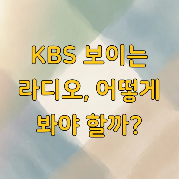 본 콘텐츠는 KBS 보이는 라디오 시청 방법에 대한 일반적인 정보 제공을 목적으로 작성되었습니다. 특정 프로그램의 송출 여부, 방송 시간, 다시 보기 서비스 제공 시점 등은 KBS 내부 사정에 따라 변경될 수 있습니다. 최신 정보는 KBS 공식 홈페이지 또는 관련 앱을 참고하시기 바랍니다.